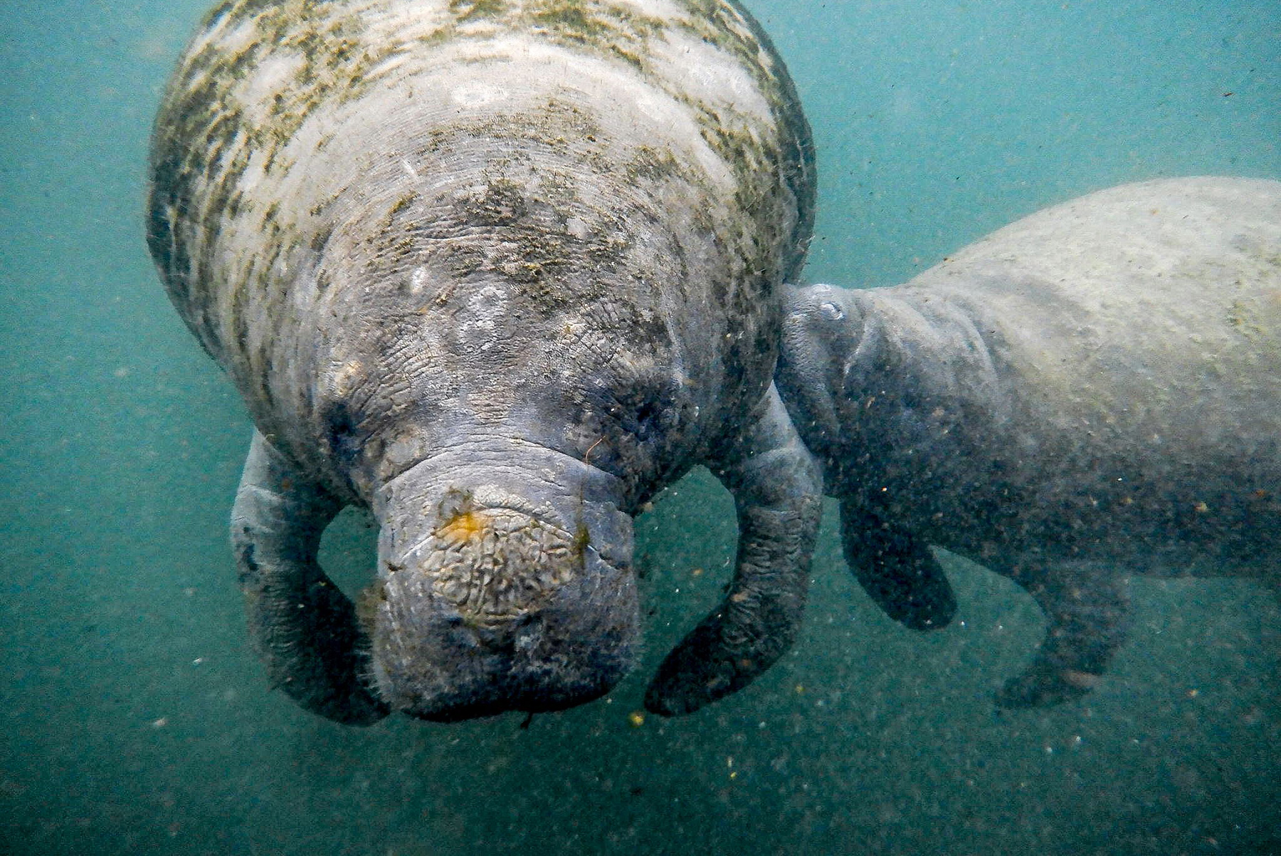 4,000 – 7,000 manatees live in and amongst Florida’s East Coast freshwater springs and coastal estuaries like the Indian River Lagoon. In 2021, 1,100 Florida manatees died when algal blooms in the Lagoon killed large swaths of seagrass — their primary food source.